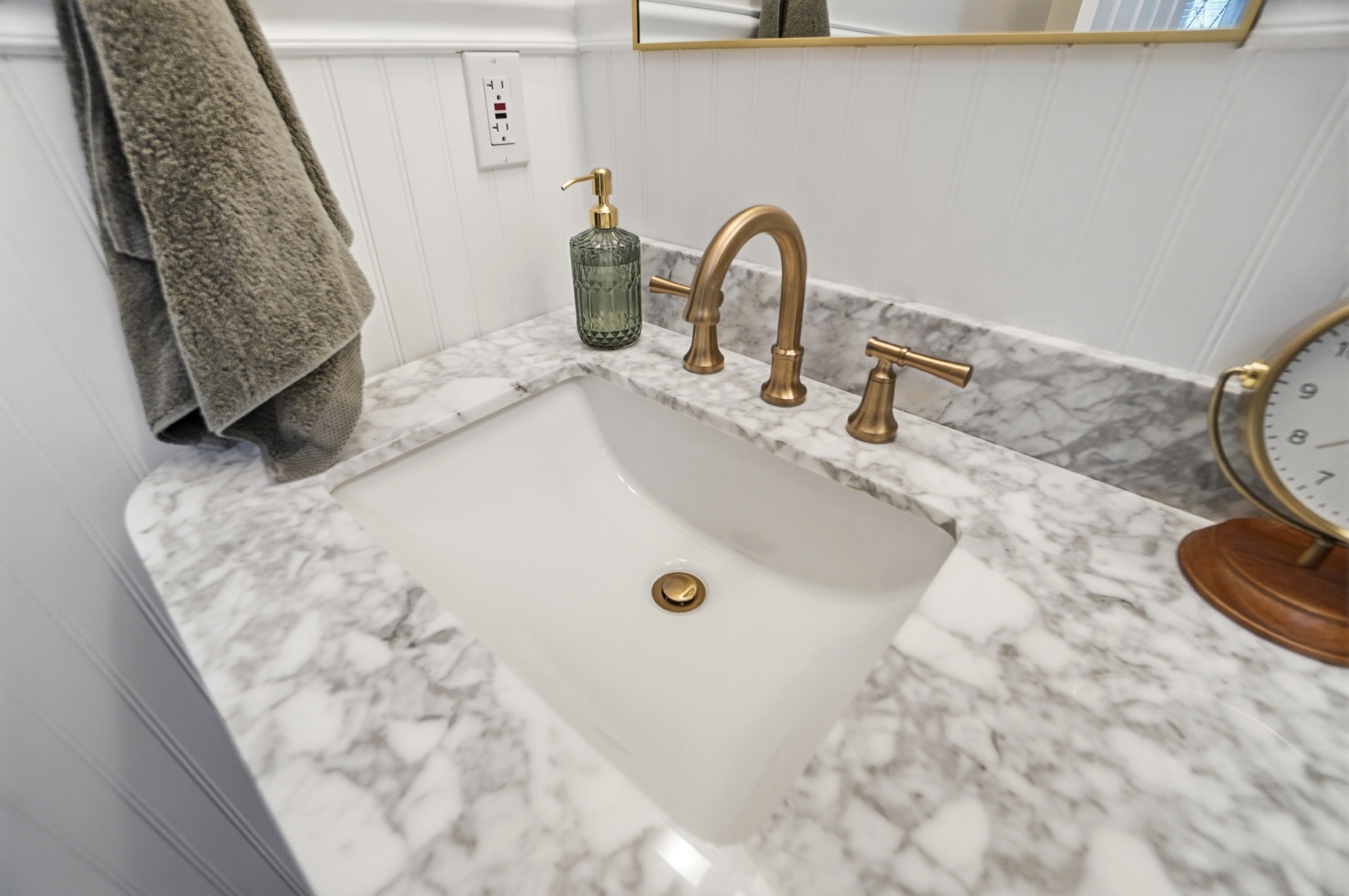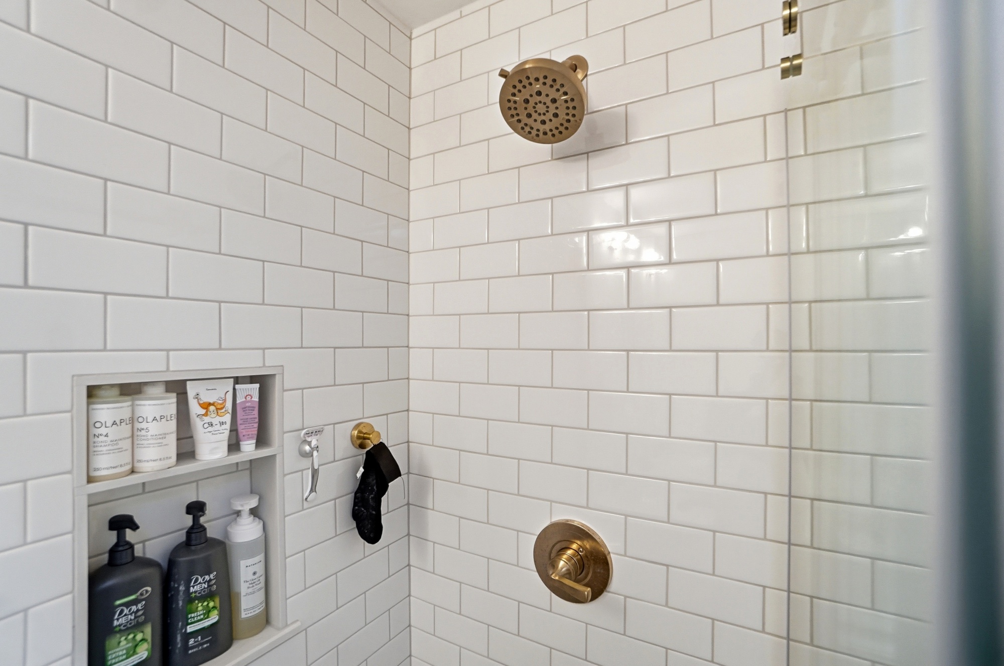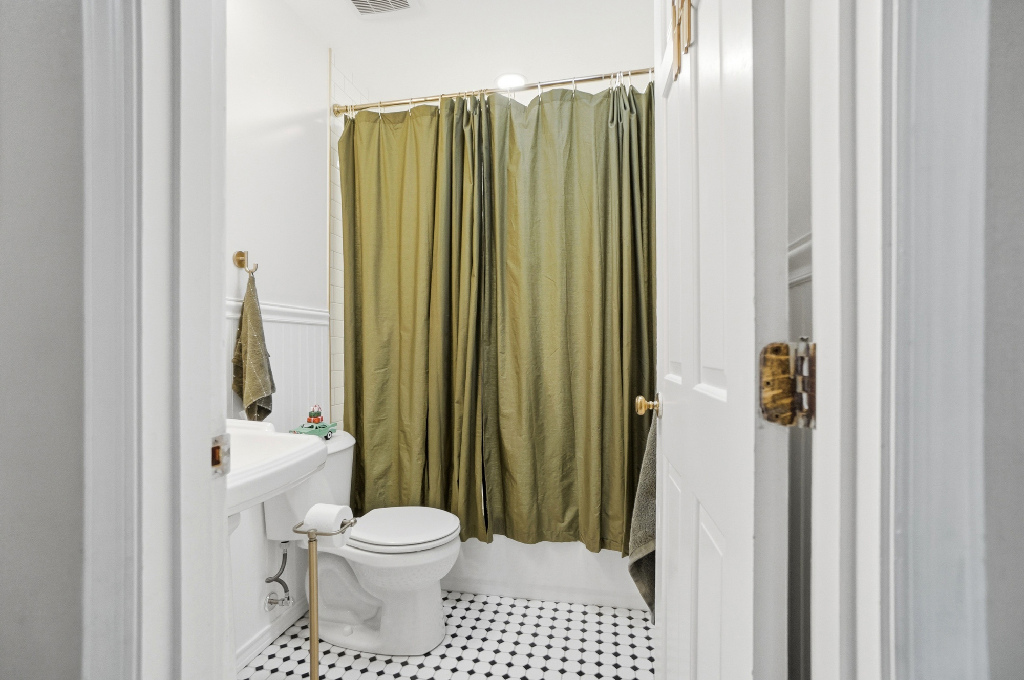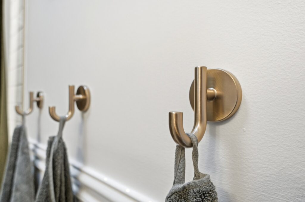 This bathroom renovation in West Chester Township blends modern design with thoughtful, personal details. Gold accents paired with classic black-and-white tile create a space that feels clean, timeless, and full of personality, proving that even small updates can make a big impact.